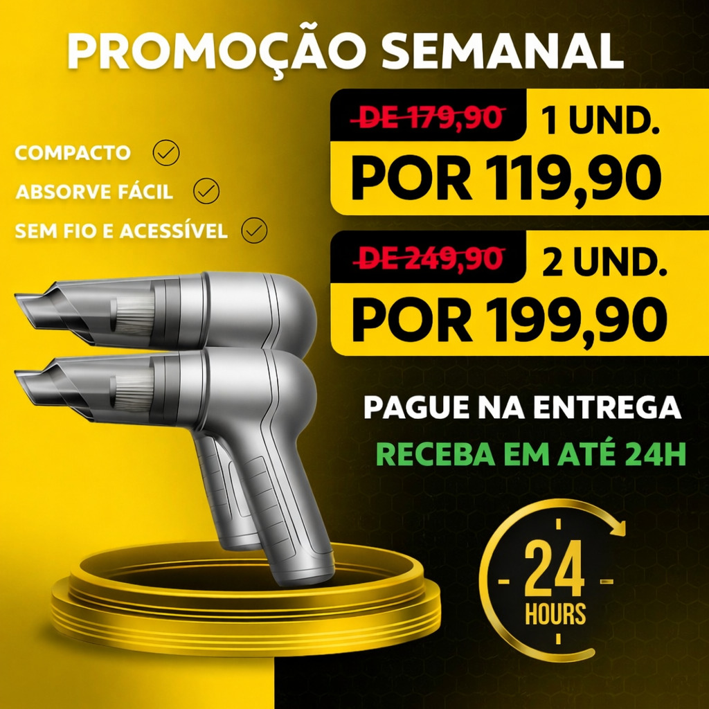 Não perca tempo e garanta agora o seu aspirador de pó portátil.